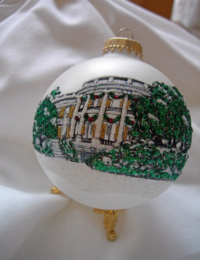 • Stage 5: Packaging of most ornaments will be in a white box with a cellophane window. Smaller ornaments will not have a window.  Unless specified, the box will carry the logo of A Presidential Christmas. Plain white boxes available upon request in the beginning.